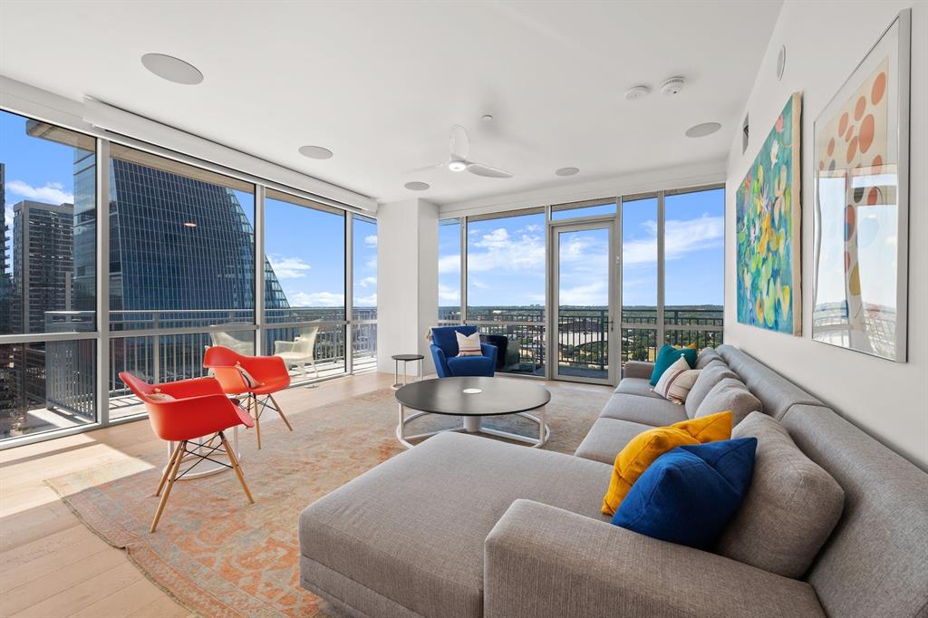 Available fully furnished! Welcome to the luxurious Seaholm Residences in Austin, Texas! This stunning 3-bedroom, 3-bathroom condo is a masterpiece of modern design and state-of-the-art technology. With a spacious 2,227 square feet of fully furnished living space and spectacular Lake and City views from the 21st floor, this home is truly one-of-a-kind. The entire home has been customized with a state-of-the-art home automation system and AV system, allowing you to control everything from your wall control panels or cell phone. Motorized solar shades provide privacy while still allowing for breathtaking views. The ultimate movie theater experience awaits you with a recessed projector, an 11-foot retractable screen, and eight hidden electromotion surround sound speakers. Even the restrooms have Martin Logan speakers installed! The gourmet kitchen features a Wolf range and Subzero fridge that will delight any chef. Fully built-out closets provide ample storage space for all your belongings. A full-size washer and dryer are included in the unit for added convenience. Need to work from home? No problem! There’s a 14-foot built-in two-person desk waiting for you. Seaholm Residences provides an array of amenities for its residents including a heated pool, fitness center, dog park, business center, concierge service, and much more! The surrounding area of Austin also provides endless entertainment options such as live music venues, restaurants featuring world-class cuisine, museums and art galleries showcasing local talent, outdoor activities like hiking and biking trails along Lady Bird Lake or Zilker Park’s Barton Springs Pool.